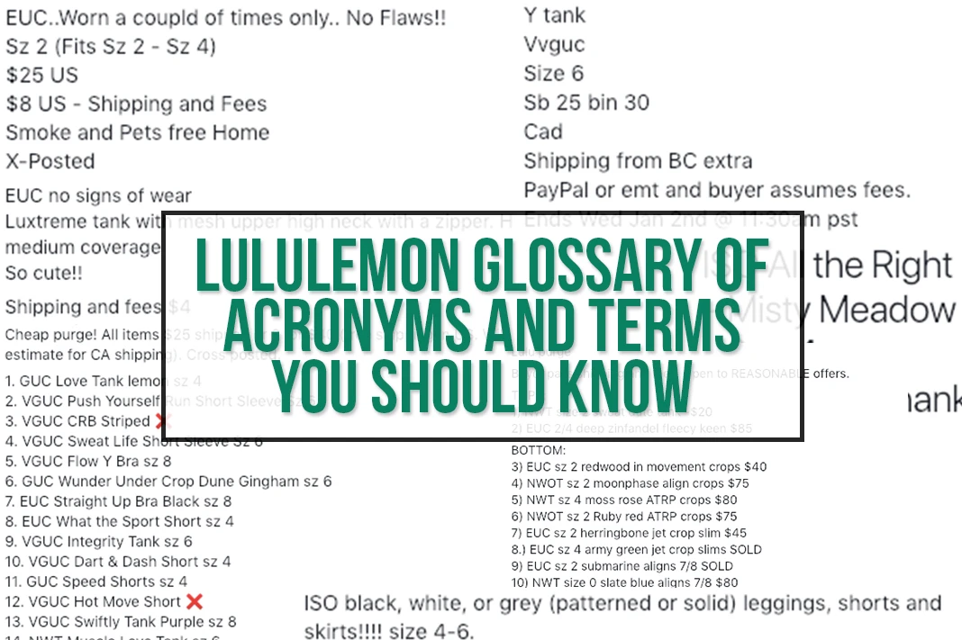 Our lululemon glossary will help you understand the acronyms & terms often used in lululemon vernacular. Use this to better understand lulu lingo & more!